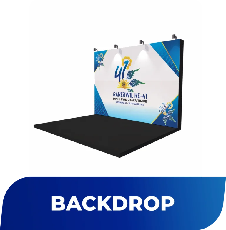Layanan backdrop profesional untuk kebutuhan corporate gathering, seminar, awarding, launching, maupun aktivitas perusahaan lainnya. Backdrop dibuat menggunakan material banner, multiplek, atau triplek—kokoh, rapi, dan siap dipakai untuk panggung utama maupun area photobooth.