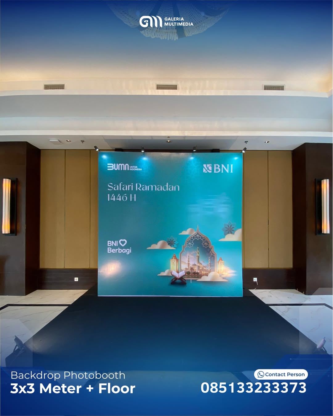 Desain bisa disesuaikan dengan branding perusahaan, mulai dari simpel elegan hingga yang lebih eye-catching. Tim kami menyiapkan instalasi dari awal hingga selesai, sehingga acara berjalan tanpa gangguan. Dengan backdrop yang tepat, tampilan event jadi lebih profesional, spot foto lebih menarik, dan dokumentasi perusahaan terlihat jauh lebih berkualitas.